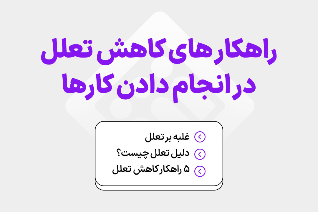 برای اینکه تعلل را یک بار و برای همیشه کنار گذارید، باید آن را بشناسید .تعلل با تنبلی فرق دارد! دلیل اصلی تعلل تنبلی نیست .شاید انضباط فردی ضعیفی دارید .انضباط فردی مهارتی یادگرفتنی است .شاید خسته هستید یا انگیزه شما کم شده است .اگر چیزی را عمیقاً و با تمام وجود بخواهید ،تعلل را کنار می گذارید و به راحتی در معرض وسوسه موضوعات حواس پرت کن قرار نمی گیرید .شاید شما هم در نوشتن گزارش کاری ،تماس تلفنی ،اخراج کسی که به وضوح باید از شرکت تان برود ،تمیز کردن پارکینگ یا ورزش کردن تعلل کنید وچگونه می توان تعلل را از بین برد یا کمتر کرد.