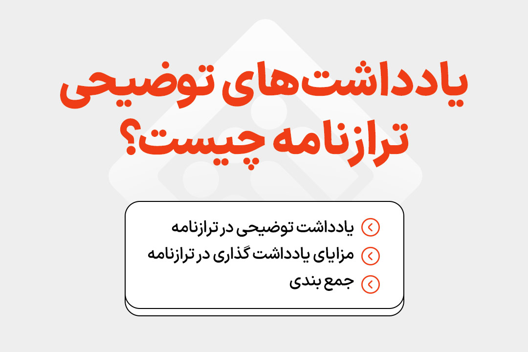 یادداشت توضیحی در ترازنامه ابزاری قدرتمند برای افزایش شفافیت، درک بهتر و اعتماد به اطلاعات مالی سازمان است. ترازنامه یا Balance Sheet در حسابداری یکی از اصلیترین ابزارها برای نمایش وضعیت مالی یک سازمان است. ترازنامه در واقع یک سند مالی است که در آن داراییها (Assets)، بدهیها (Liabilities) و حقوق صاحبان سهام (Equity) سازمان در یک لحظه خاص ثبت میشوند.